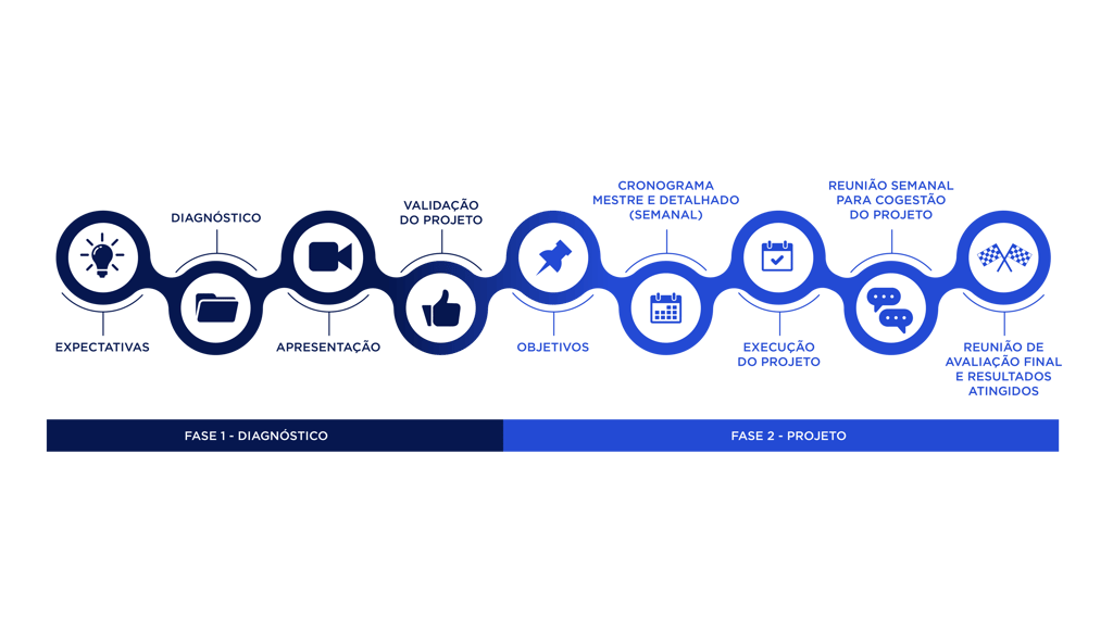 Um time de Consultores com experiências multidisciplinares está preparado para alavancar o seu negócio. Apresentamos a você uma proposta de trabalho diferenciada que se inicia através de um Diagnóstico empresarial que demonstra os pontos de melhoria e oportunidades para serem aproveitadas pela empresa e na sequência apresenta um plano de ação personalizado para a necessidade da sua empresa.